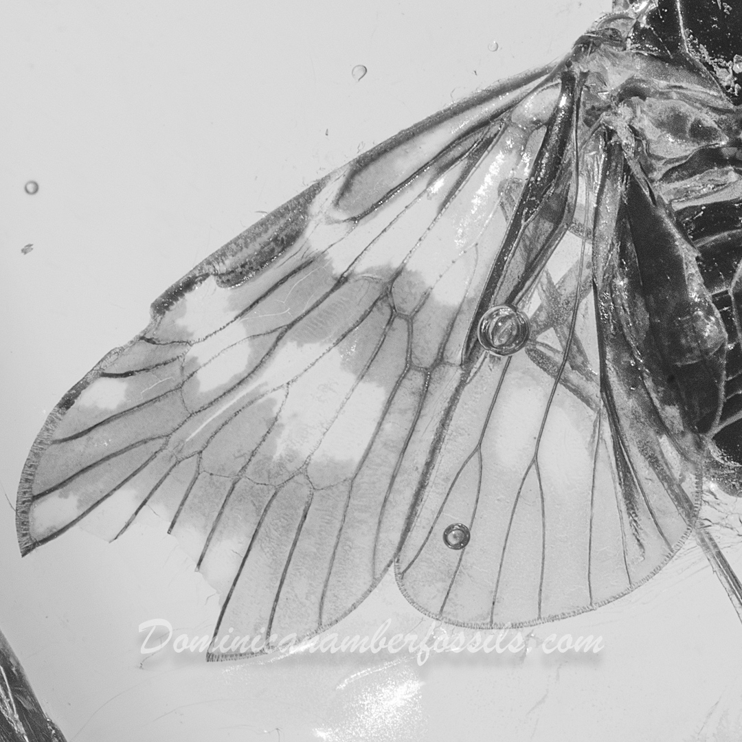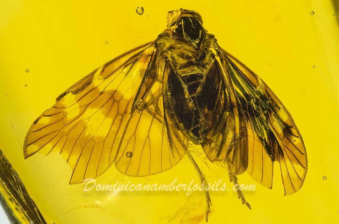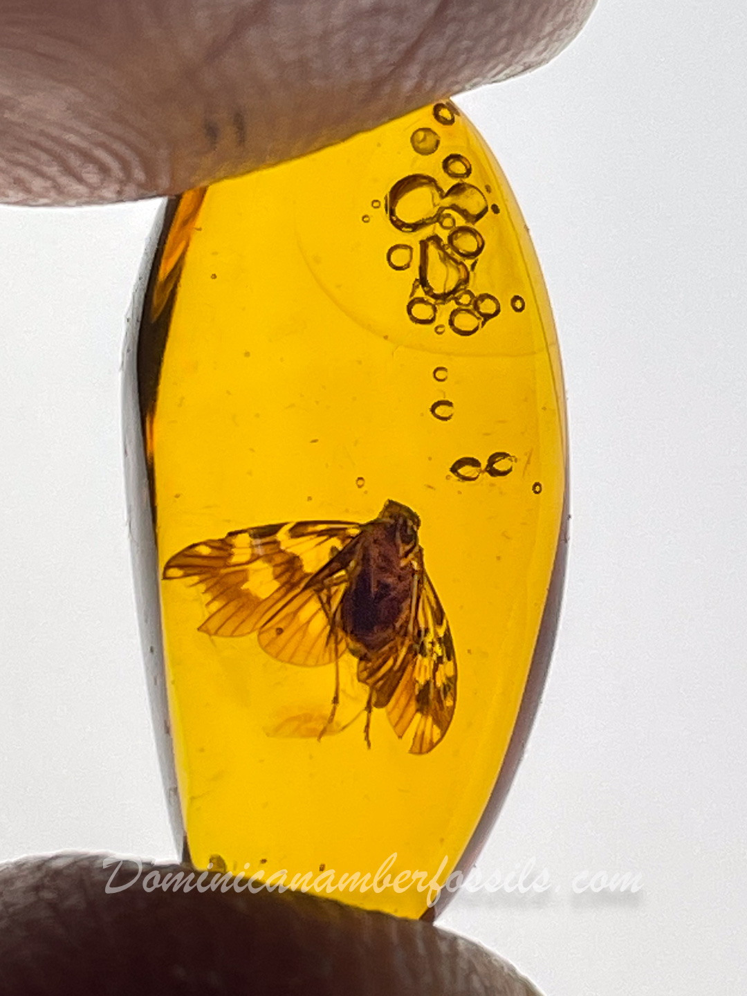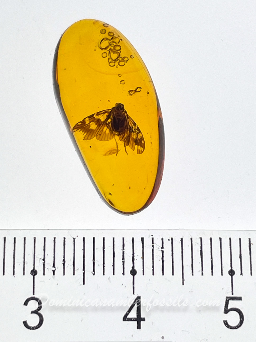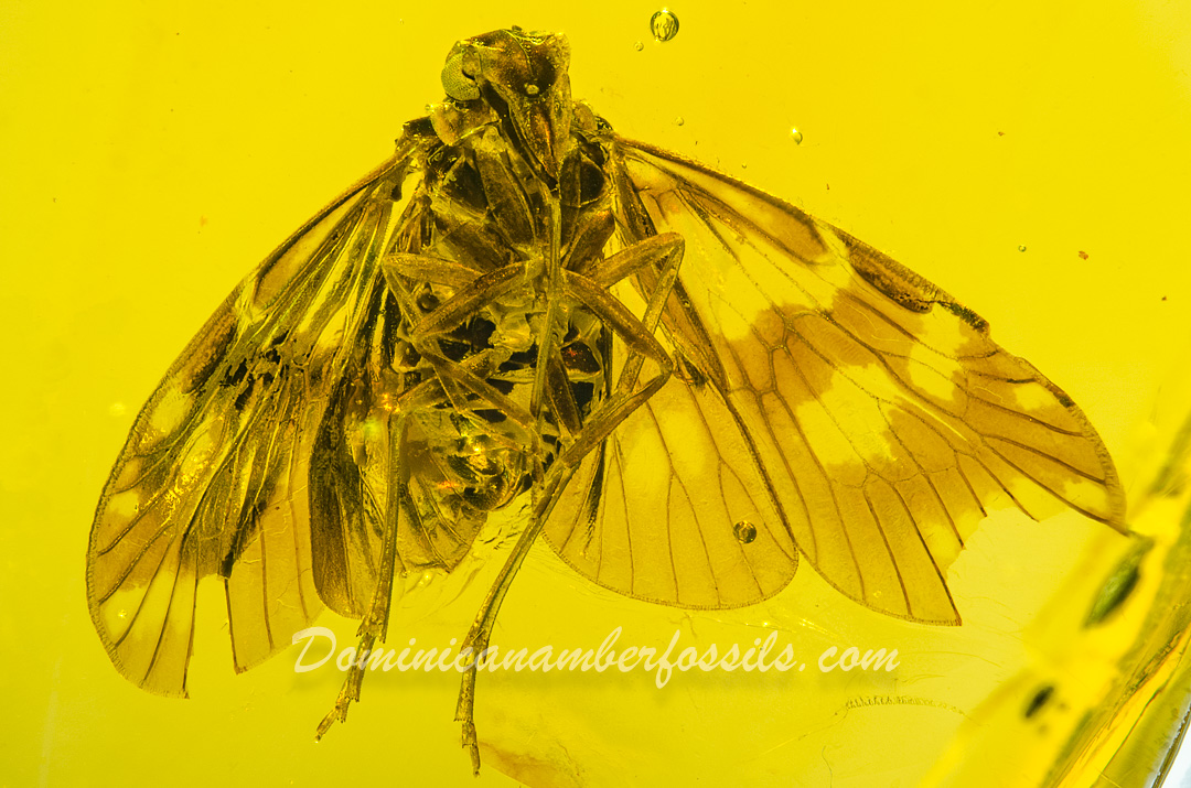 Authentic Dominican Amber FossilBeautiful "Flying" Planthopper (Homoptera)Very Well Displayed Specimen with Wings Wide OpenInclusion Totally Covered by the Amber21.7 x 10.7 x 6.1mm - 3.5Ct